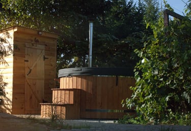 Zanurz się w przyjemnym cieple naszej drewnem opalanej bani, która jest dostępna przez cały rok. W chłodniejsze dni zapewnia wyjątkowe doznania termalne i relaks, a dzięki unikalnej konstrukcji łączy zalety tradycyjnej bani z nowoczesnym jacuzzi. To idealna opcja dla tych, którzy szukają odprężenia zarówno zimą, jak i latem.