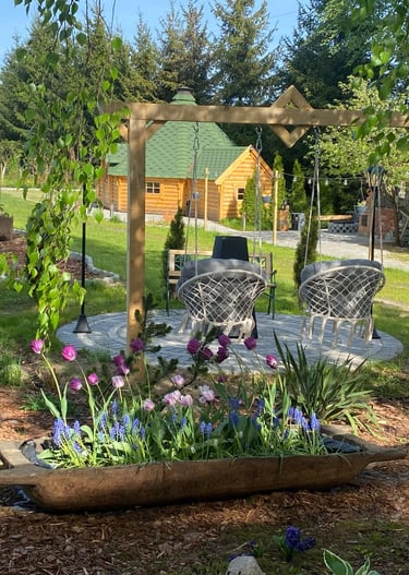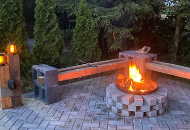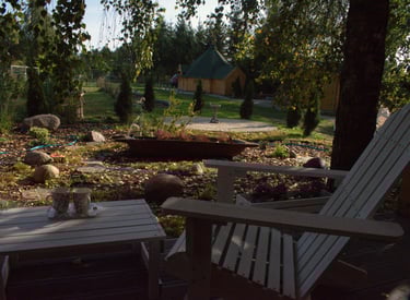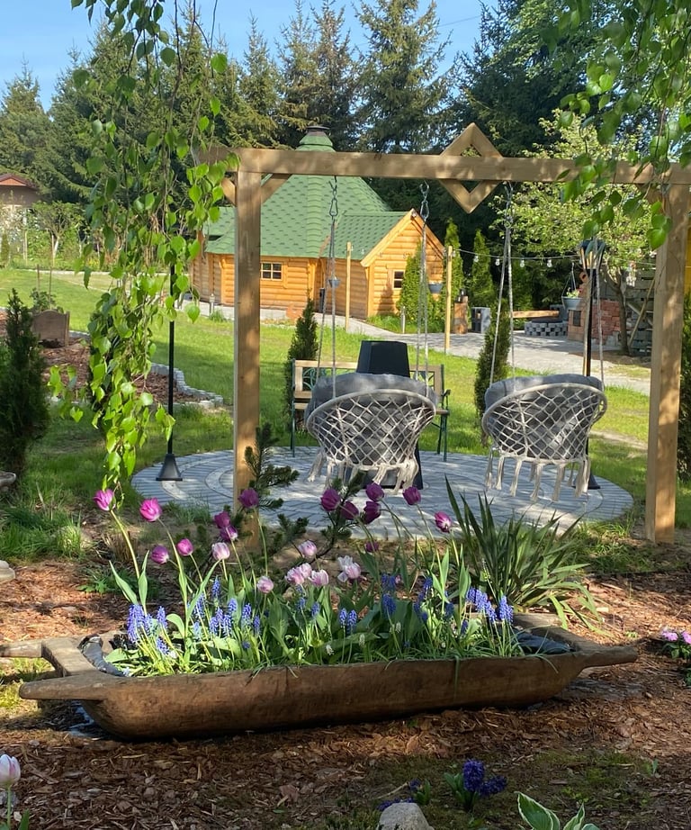 Prywatna strefa relaksu na świeżym powietrzu, idealna na wieczorne chwile odprężenia.Taras i miejsce na grill/ognisko